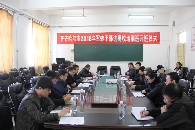 齐齐哈尔市军队转业干部安置工作领导小组确定齐齐哈尔大学为齐齐哈尔市军转干部培训基地后,校领导高度重视,继续教育学院积极筹备,教务处等职能部门大力支持,哲学与法学学院、教育与传媒学院全力配合,工作进展顺利,赢得了齐齐哈尔市主管部门的赞许。此次开学式顺利召开,两名学员分别由教育与传媒学院、哲学与法学学院安排插班学习,标志着我校响应了党中央的号召,打开了我校军队干部培训工作的新局面,同时也拓展了我校培训工作的覆盖面,促进了我校培训工作再上新台阶。