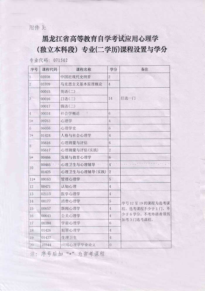 自考本科二学历—应用心理学专业课程设置