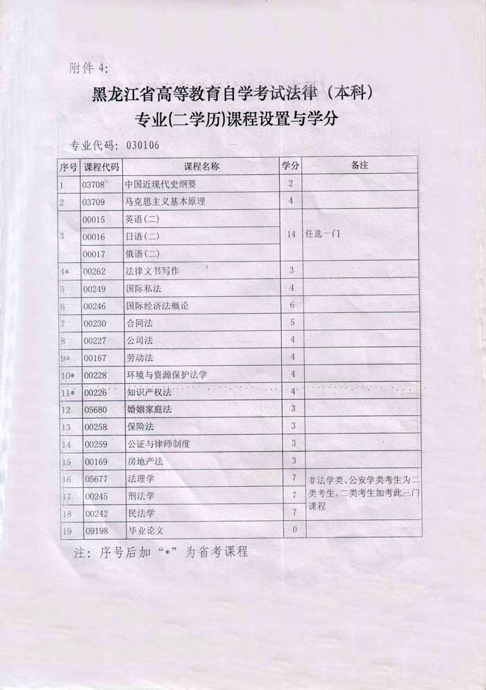 自考本科二学历—法律专业课程设置