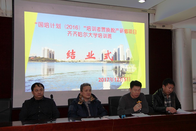 12月5日16:00时,“国培计划(2016)”培训者置换脱产研修项目齐齐哈尔大学培训班结业式在我校培训中心4楼会议室举行,继续教育学院院长孙北光,副院长栾锋,继续教育管理科科长李劲松、培训班班主任吴秉会,以及6个项目县的106名国培计划学员参加了结业式,结业式由副院长栾锋主持。