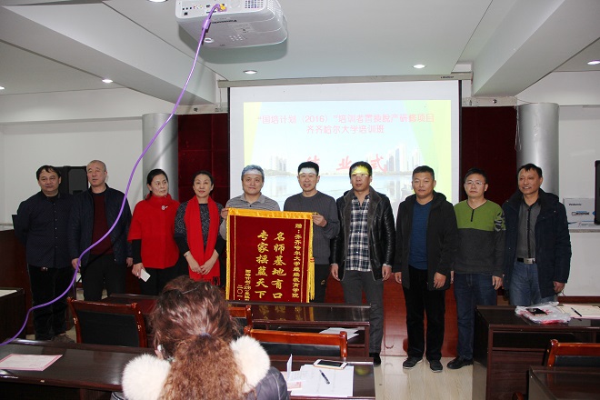 国培计划(2016)置换脱产班全体学员向继续教育学院赠送了题为“名师基地有口皆碑,专家摇篮天下无双”的锦旗,以表达对我校的感恩之情。