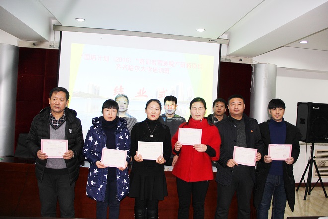 培训班学员代表孙向红在会上发言,她说“本次培训,使我们增进了对国培政策和项目县工作任务和送教下乡项目的了解,为返岗实践和送教下乡打下良好基础。一年里,我们辛苦着、收获着、成长着,感恩国培,让我们在齐大相识;感恩国培,让我们有一次不同寻常的旅行;感恩学校,感谢齐齐哈尔大学对我们的培育。”